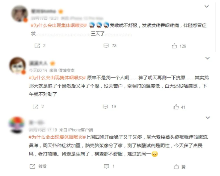 近日,話題#為什么會出現(xiàn)集體咽喉炎#在多個社交平臺登上熱搜,引發(fā)很多人的關注和討論。